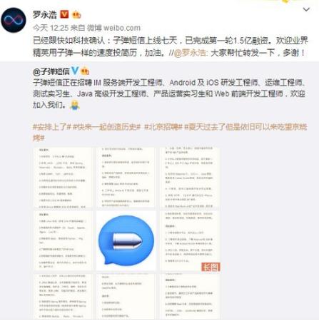 子彈短信七天完成1.5億融資