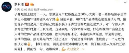 子彈短信上線(xiàn)僅11天用戶(hù)數量即突破500萬(wàn)大關(guān),但老羅自己也表示,對于一個(gè)熟人關(guān)系為主的即時(shí)通訊工具來(lái)說(shuō)“沒(méi)有好友”確實(shí)是個(gè)致命的問(wèn)題。但他們有一個(gè)天才產(chǎn)品經(jīng)理提出了一個(gè)無(wú)敵的解決方案,會(huì )在一兩周后的版本中解決熟人關(guān)系的遷移問(wèn)題。