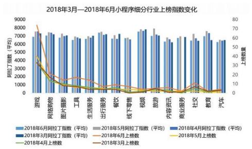 從阿拉丁顯示的小程序上榜數量來(lái)看,游戲、網(wǎng)絡(luò )購物、圖片攝影、生活服務(wù)、工具、出行服務(wù)、餐飲等都呈現出一定的增長(cháng)趨勢。