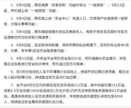 這次樂(lè )清女孩遇害案發(fā)生后,滴滴試運營(yíng)全程錄音;乘客端原“緊急求助”功能升級為“一鍵報警”;司機端強化安全提示,并在每日出車(chē)前進(jìn)行安全知識考核,司機通過(guò)后方可接單。