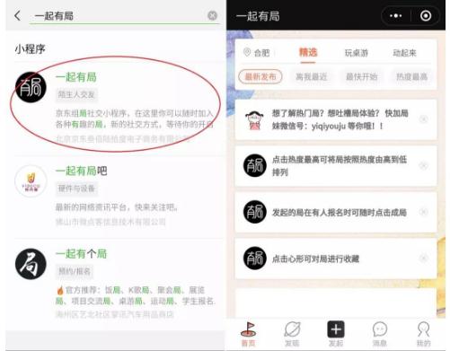 近日,京東悄悄上線(xiàn)了一款名為「一起有局」的小程序(邯鄲小程序開(kāi)發(fā)),用戶(hù)可以通過(guò)這款小程序基于地理位置及興趣愛(ài)好等維度,參加或者創(chuàng )建各種自己感興趣的「局」,由線(xiàn)上報名參加或發(fā)起組局即可進(jìn)行線(xiàn)下活動(dòng),以此和有相同興趣愛(ài)好的陌生人玩到一起。
