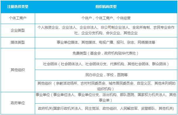 1)若組織機構代碼證上“機構類(lèi)型”為:企業(yè)法人、企業(yè)非法人、請選擇“企業(yè)類(lèi)型”進(jìn)行登記;