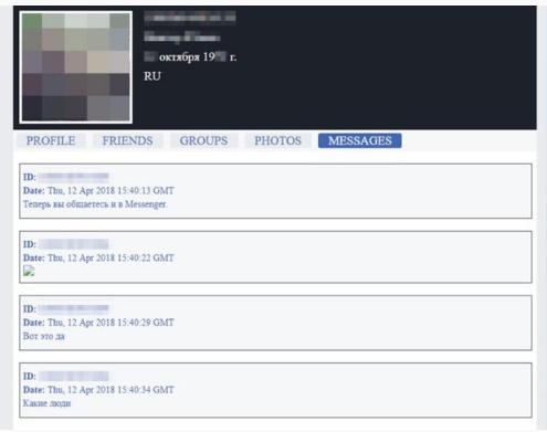 BBC 就此與 5 名俄羅斯 Facebook 用戶(hù)取得了聯(lián)系,證實(shí)被上傳的私人信息是屬于他們的。其中一名用戶(hù)的被盜信息是最近度假時(shí)的照片,另一名用戶(hù)與 Depeche Mode 樂(lè )隊演唱會(huì )有關(guān)的聊天記錄被盜,還有一名用戶(hù)則是抱怨自己女婿的相關(guān)信息被公布了出來(lái)。此外,一對戀人之間的親密通信也遭到泄露。