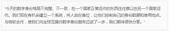 在戰略合作中,微軟和萬(wàn)事達卡正在一項服務(wù),該服務(wù)將“允許個(gè)人使用他們的個(gè)人設備以他們的方式進(jìn)入,控制和共享他們的身份數據”。兩家公司聲稱(chēng)這將簡(jiǎn)化和簡(jiǎn)化利用金融,電子商務(wù),政府和數字服務(wù)的過(guò)程。