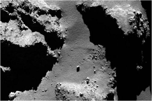 在連接啞鈴形 67P 的兩個(gè)葉片的“頸部”區域尤其如此,其中一塊 10 米(33 英尺)的巨石從懸崖上掉下來(lái)并在最終落下前反彈幾次。