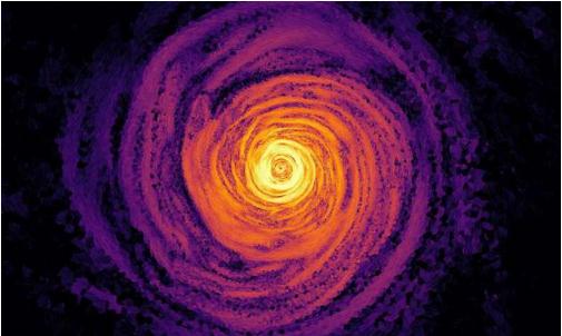 科學(xué)家用計算機模擬了類(lèi)似心宿三的磁星是如何誕生的。該圖像是軌道平面的剖面圖,其中的填色代表了磁場(chǎng)的強度,而淺色的剖面線(xiàn)則反映了磁場(chǎng)線(xiàn)的方向