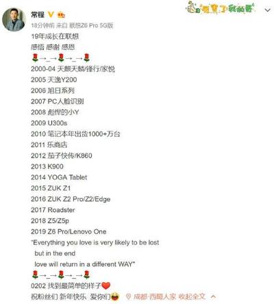 12月31日消息,原聯(lián)想移動(dòng)業(yè)務(wù)中國區總負責人常程微博宣布離職:19年成長(cháng)在聯(lián)想,感悟、感謝、感恩。“Everything you love is very likely to be lost but in the end love will return in a different WAY”。