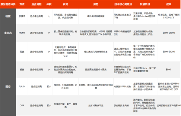 不同類(lèi)型的激光雷達,優(yōu)缺點(diǎn)也很明顯。