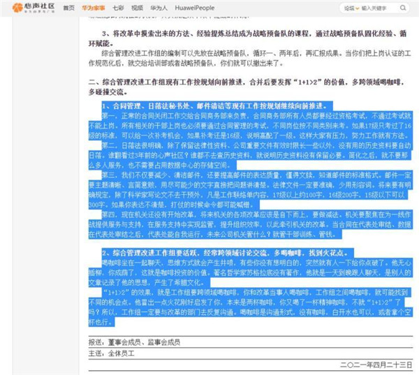 眾所周知,華為的“心聲社區”是全球科技公司里罕有的透明措施。這個(gè)網(wǎng)絡(luò )論壇讓公司內部員工公開(kāi)討論公司管理,并且讓公司之外的網(wǎng)友可以隨意查看公司的一些內部講話(huà)等材料——你見(jiàn)過(guò)谷歌,亞馬遜和蘋(píng)果公司允許這么做嗎?