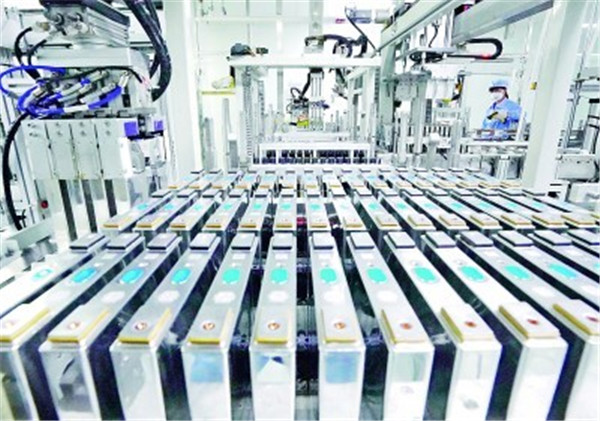河北唐山市一家鋰電池企業(yè)的工人在生產(chǎn)線(xiàn)上工作。新華社發(fā)