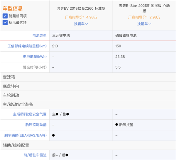 新款降價(jià)2萬(wàn)賣(mài),難道是廠(chǎng)家用心回饋消費者嗎?這位長(cháng)安汽車(chē)4S店銷(xiāo)售告訴虎嗅,2.98萬(wàn)元和3.98萬(wàn)元的國民版取消了安全氣囊。作為對比,老款奔奔EV最低售價(jià)為4.98萬(wàn)元的版本都標配了主/副駕駛安全氣囊。