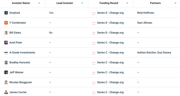 (Change.org的投資人陣容豪華,有硅谷知名VC和頂級富豪坐鎮)