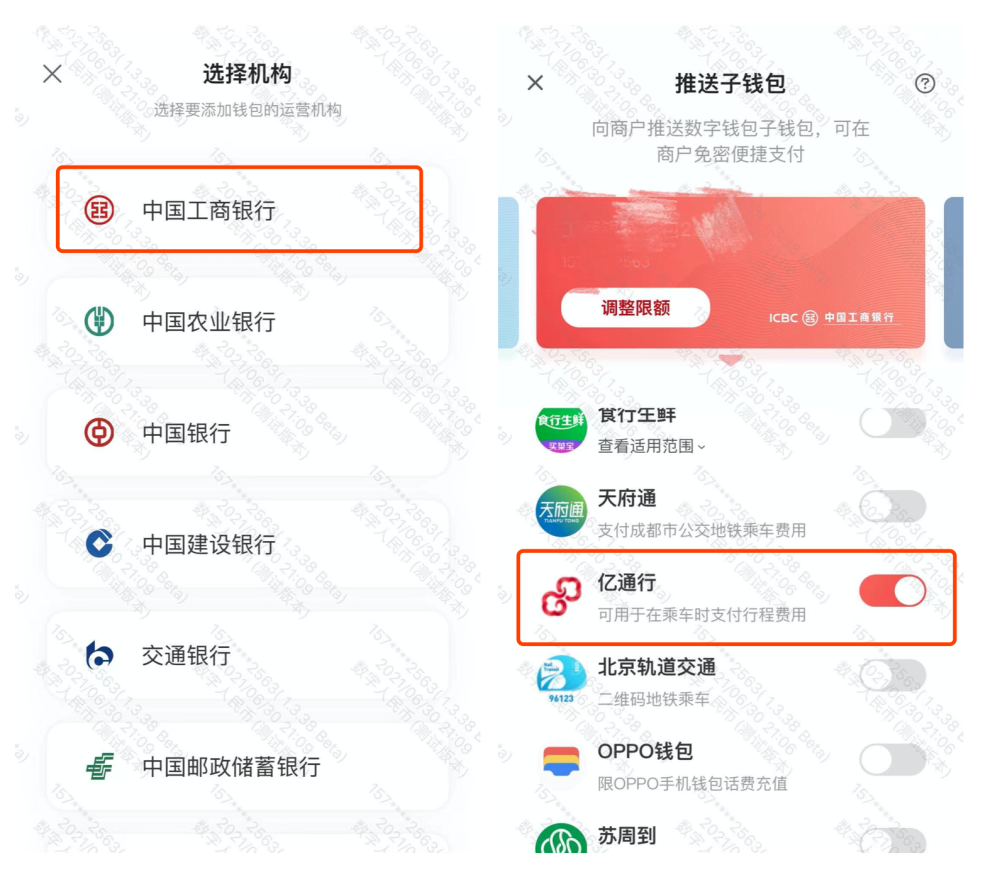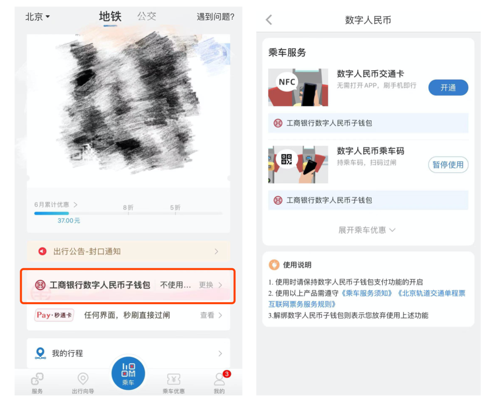 此次只需在工行數字人民幣“子錢(qián)包”中點(diǎn)選北京地鐵服務(wù)APP“億通行”,將兩者綁定之后,即可在“億通行”乘車(chē)碼頁(yè)面看到“數字人民幣專(zhuān)區”。