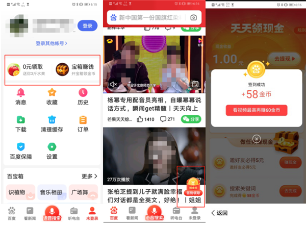 另外,百度作為搜索工具,也在有意“留住”老年用戶(hù),簡(jiǎn)化頁(yè)面后著(zhù)重突出了看新聞、聽(tīng)電臺、以及搜索等功能。同時(shí)還添加了0元領(lǐng)水果、簽到領(lǐng)金幣等小游戲,以此增加用戶(hù)活躍度和使用時(shí)長(cháng)。