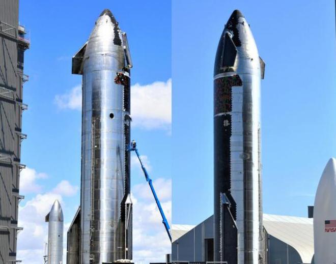 然而,除了移除猛禽發(fā)動(dòng)機外,自被送返高艙以來(lái),工作人員最重要的任務(wù)是檢查 S20 的隔熱罩,修復或更換破碎、破損和松動(dòng)的隔熱瓦。在 S20 回到建造現場(chǎng)后不久,吊桿升降機上的工作人員開(kāi)始了看似艱巨的過(guò)程,即檢查星際飛船的機頭隔熱罩,并用彩色膠帶標記數百塊有裂縫、破碎或其他不太明顯問(wèn)題的隔熱瓦。