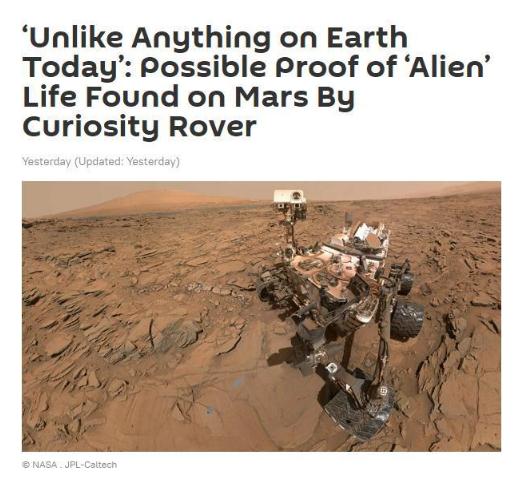 據俄羅斯衛星通訊社19日報道,根據發(fā)表在《美國國家科學(xué)院院刊》的一項新研究,美國NASA“好奇號”探測器在火星上發(fā)現了一種不尋常的碳信號,這可能會(huì )證明外星生命的確存在過(guò)。