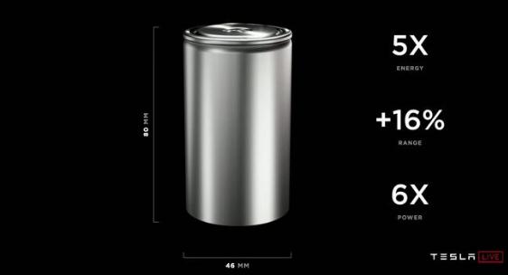 在 2020 年的特斯拉電池日之前,特斯拉就和松下進(jìn)行探討,在研究了了成本、車(chē)輛本身的平衡以及圓柱形電池帶來(lái)的其他可能性之后,4680 被確認為車(chē)用電池的最佳尺寸。相比 2170 電池,4680 電池能提供 6 倍動(dòng)力,整車(chē)續航增加 16%。