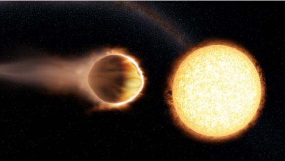 該研究中的行星——超熱木星 WASP-121b 是一顆體積接近木星兩倍的巨大氣體巨星,于 2015 年被發(fā)現,圍繞著(zhù)一顆距地球約 850 光年的恒星運行。這顆行星的軌道是迄今為止探測到的最短的軌道之一,環(huán)繞其恒星的時(shí)間僅為 30 小時(shí)。它處于潮汐鎖定狀態(tài),這意味著(zhù)它的一側總是面向恒星,溫度極高;而另一側永遠朝向太空,總是黑暗的。