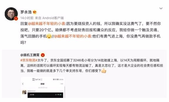 羅永浩回復網(wǎng)友 因為要燒投資人的錢(qián)所以沒(méi)勇氣做手機了