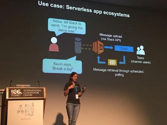 在應用程序生態(tài)系統中,應用程序或工作流是在無(wú)服務(wù)器環(huán)境中創(chuàng )建的,并結合了 AWS 功能和產(chǎn)品以及第三方服務(wù)商 API。Bonner 舉了一個(gè)例子,有人告訴 Amazon Echo,他們正在做演示,然后語(yǔ)音數據觸發(fā) lambda 函數,通過(guò) Slack API 將該消息傳遞給遠程團隊。然后在無(wú)服務(wù)器環(huán)境中輪詢(xún)確定團隊何時(shí)做出響應并向 Echo 發(fā)送反饋信息。