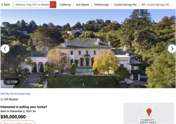 這座灣區豪宅在去年 12 月以 3000 萬(wàn)美元的價(jià)格售出,占地 16000 平方英尺,有 7 間臥室、9 間浴室和一個(gè)游泳池。這塊土地是舊金山“最大的地塊之一”,其歷史可以追溯到 1912 年左右。