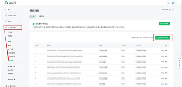 微信公眾號模板消息在哪添加,公眾號模板消息設置