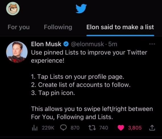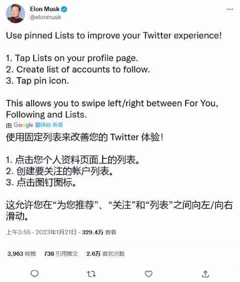馬斯克在推文中預告了固定列表功能,并介紹了啟用該功能所需的 3 個(gè)步驟。事實(shí)上這項功能早在 2019 年就已經(jīng)上線(xiàn),只是用戶(hù)使用頻率并不高,最終 Twitter 回歸了正常的時(shí)間軸。