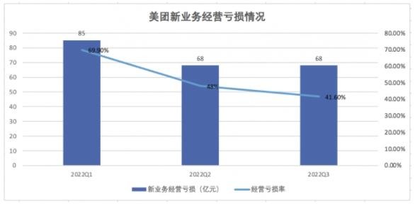 財報顯示,2022 年前三季度,美團新業(yè)務(wù)分部經(jīng)營(yíng)虧損累計達到 221 億元,拖累公司整體經(jīng)營(yíng)虧損累計超 50 億元。要改善經(jīng)營(yíng)狀況,對經(jīng)營(yíng)效率不佳的業(yè)務(wù)作出調整勢在必行。美團經(jīng)營(yíng)虧損率從 2022 年第一季度的 69.9% 收窄至第三季度的 41.6%,主要就是由于商品零售業(yè)務(wù)的運營(yíng)效率不斷提高,以及其他新業(yè)務(wù)有效的成本及開(kāi)支控制。