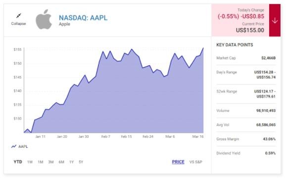 美國股市動(dòng)蕩 華爾街多家金融機構認定蘋(píng)果股價(jià)被低估 10:40:09