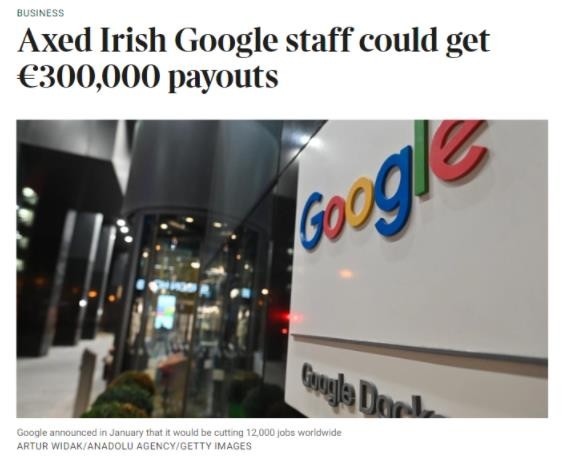 據英國泰晤士報,谷歌為了安撫即將離職的員工,提供了非??犊难a償方案,被裁員工每工作一年的補償費為六周的薪資。以谷歌員工的平均年薪 14.2 萬(wàn)歐元(含福利)計算,如果有人從 2003 年谷歌進(jìn)入愛(ài)爾蘭市場(chǎng)開(kāi)始就加入了公司,那么其將獲得超過(guò) 30 萬(wàn)歐元(IT之家備注:當前約 221.4 萬(wàn)元人民幣)的遣散費。