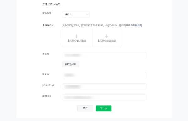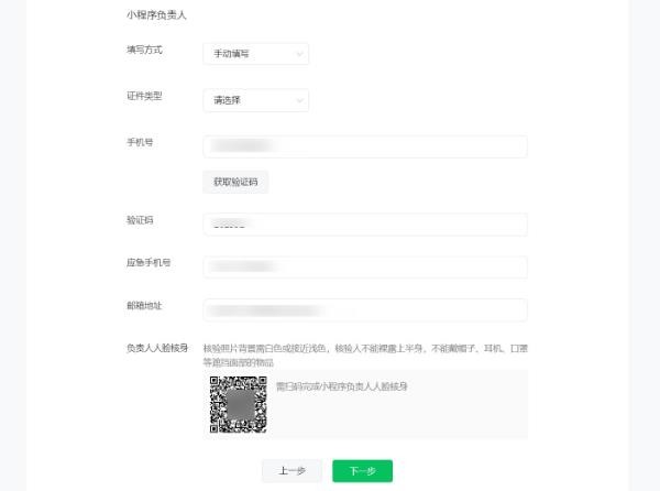 4、小程序負責人信息填寫(xiě)及人臉核身