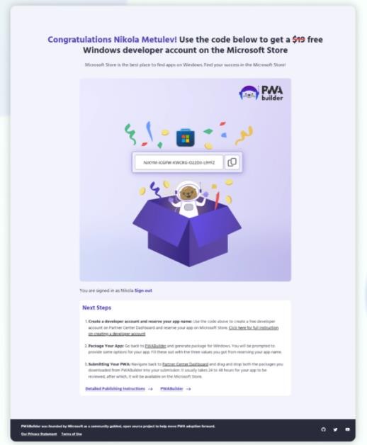 微軟表示自今天到 9 月 15 日為止,符合條件的開(kāi)發(fā)者可以免費獲得開(kāi)發(fā)者賬號,可以在 Microsoft Store 上免費發(fā)布 PWA 應用程序。