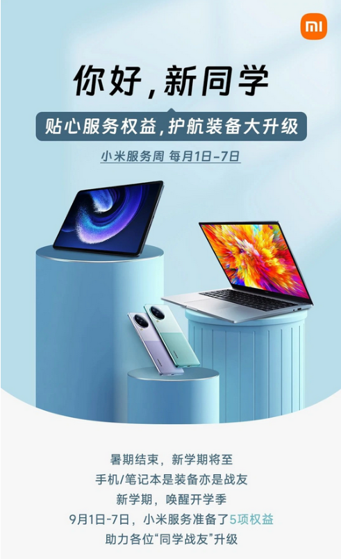 小米推出新生開(kāi)學(xué)季活動(dòng):0 元手機清潔,平板等硬件保險 6 折購