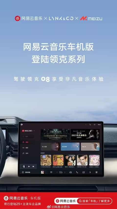 網(wǎng)易云音樂(lè )車(chē)機版登陸領(lǐng)克系列汽車(chē),支持魅族 Flyme Auto 平臺