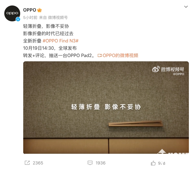 此前,OPPO已經(jīng)官宣,將于2023年10月19日14:30正式發(fā)布全新的折疊屏旗艦OPPO Find N3。發(fā)布該產(chǎn)品前,OPPO頻頻給我們預熱該產(chǎn)品。