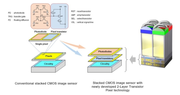 官方資料顯示,雙層晶體管像素技術(shù)可以將飽和信號量約提升至原來(lái)的2倍,擴大動(dòng)態(tài)范圍的同時(shí)降低噪點(diǎn),從而顯著(zhù)提高成像性能。