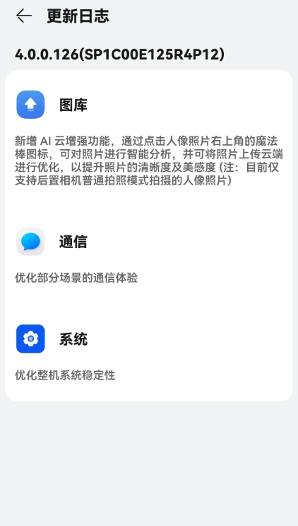 除此以外,126版本更新還優(yōu)化了部分場(chǎng)景通信體驗、優(yōu)化了整機系統穩定性。