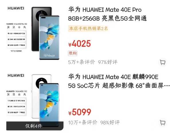 在京東自營(yíng)平臺上,華為不少老款機型都開(kāi)始促銷(xiāo)。例如,華為Mate 40E Pro 8GB+256GB版本當前售價(jià)僅為4000元出頭。