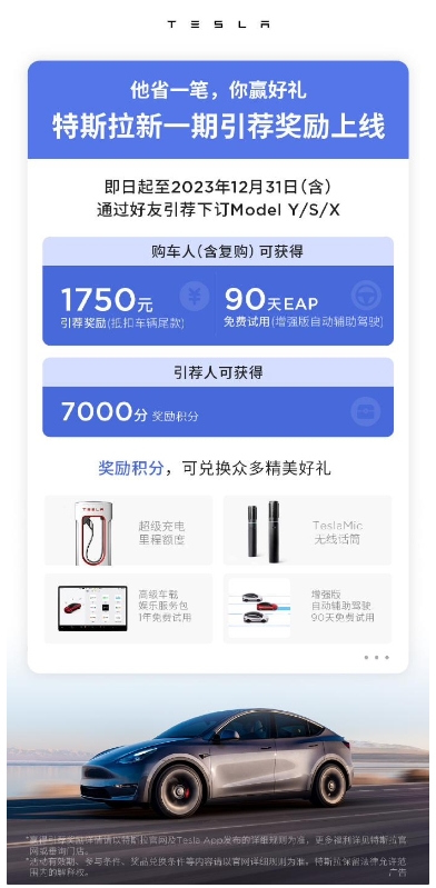本期引薦試駕、引薦購車(chē)和復購獎勵于 2023 年 11 月 1 日 7 點(diǎn)開(kāi)始,所有獎勵內容將于 2023 年 12 月 31 日 24 點(diǎn)結束。