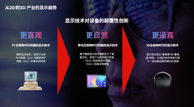 當前,3D互聯(lián)網(wǎng)時(shí)代,顯示技術(shù)的進(jìn)化開(kāi)始由“看得清”向“看得真”轉變,人們透過(guò)屏幕看到鮮活立體影像,真正實(shí)現所思即所見(jiàn),所見(jiàn)即所得。盡管3D技術(shù)為新一代顯示設備錨定了方向,但是技術(shù)的成熟還需要在硬件設備上真正落地和適配,并滿(mǎn)足用戶(hù)多元化場(chǎng)景需求,才能真正讓技術(shù)創(chuàng )新用戶(hù)體驗。