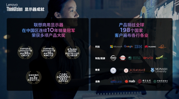 基于過(guò)往的產(chǎn)品和技術(shù)的深厚積淀,截至目前聯(lián)想ThinkVision顯示器在全球范圍內擁有3家研發(fā)設計中心,產(chǎn)品已在全球198個(gè)國家和地區銷(xiāo)售,用戶(hù)遍布科技、制造、教育、金融等各行各業(yè)。IDC的數據顯示,聯(lián)想ThinkVision顯示器已連續10年在中國商用市場(chǎng)保持第一位,在聯(lián)想2023/24財年第二季度排名全球前三。