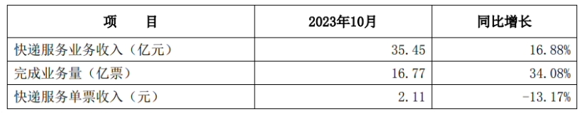 申通快遞:10 月快遞服務(wù)業(yè)務(wù)收入 35.45 億元,同比增長(cháng) 16.88%