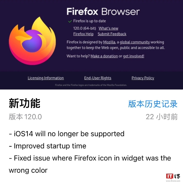火狐瀏覽器 Firefox 120 穩定版發(fā)布:添加“網(wǎng)站隱私偏好”選項、取消蘋(píng)果 iOS14 支持等