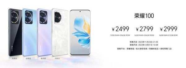 榮耀 100 售價(jià)為 2499 元(12GB+256GB 版本); 2799 元(16GB+256GB 版本);2999 元(16GB+512GB 版本)。