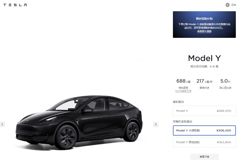 Model Y 全輪驅動(dòng)長(cháng)續航版 30.64 萬(wàn)元
