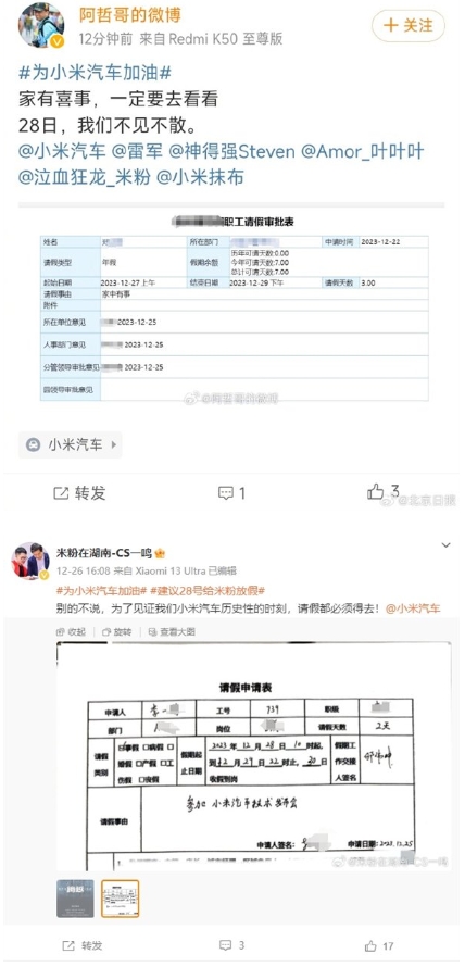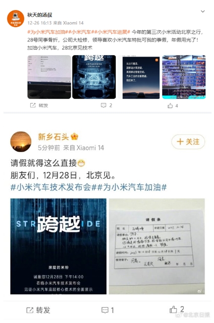 車(chē)圈春晚今天見(jiàn)!米粉花式請假參加小米汽車(chē)技術(shù)發(fā)布會(huì ):見(jiàn)證歷史性時(shí)刻