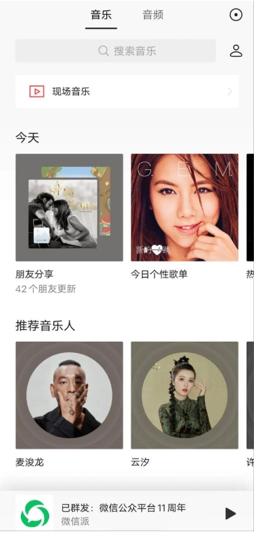 此后,微信又在音樂(lè )功能的基礎上加入了音頻功能,使得微信內的公眾號文章、視頻號等內容,都可以作為音頻供用戶(hù)使用,進(jìn)一步豐富了微信的音樂(lè )服務(wù)體系。