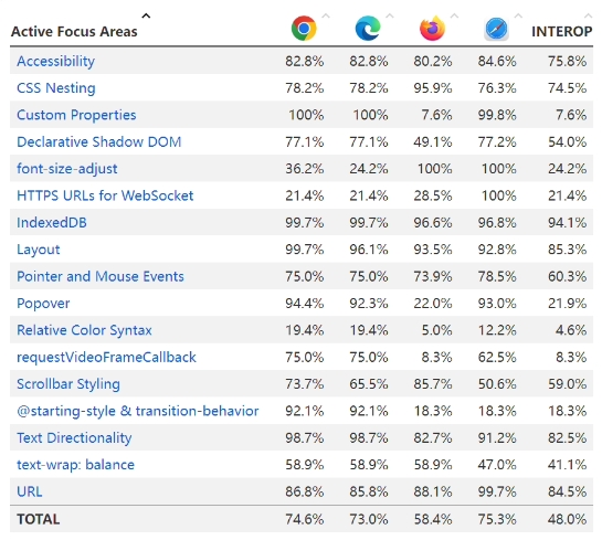 該項目最初于 2021 年宣布,名為 Compat 2021,專(zhuān)注于跨瀏覽器網(wǎng)絡(luò )兼容性。2022 年,瀏覽器巨頭們推出了瀏覽器互操作性 Interop 2022,以解決開(kāi)發(fā)者的痛點(diǎn),并使網(wǎng)絡(luò )平臺“更易于使用”。
