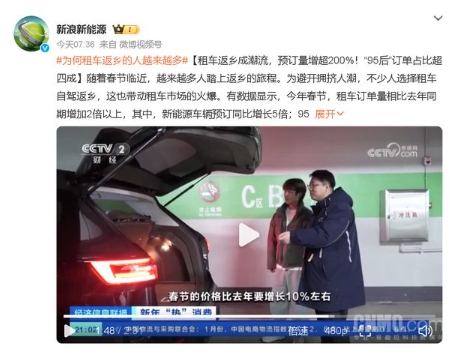 春節租車(chē)訂單比去年增加2倍多 新能源汽車(chē)成香餑餑