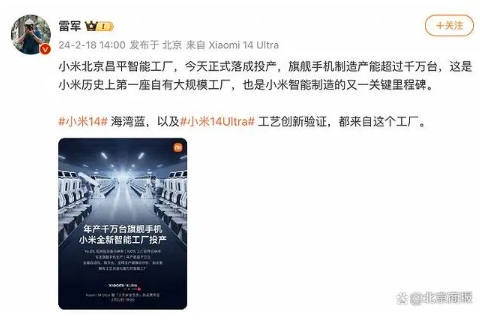 雷軍:小米北京昌平智能工廠(chǎng)今日正式落成投產(chǎn),年產(chǎn)千萬(wàn)臺旗艦手機